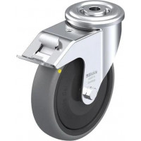 带螺栓孔的钢板压制万向脚轮, 配热塑性橡胶胎面的单轮, 配聚丙烯轮芯, 配塑料防线盖, 大, 导电, 无痕