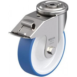 带螺栓孔配件的不锈钢万向脚轮, 配制动系统 'stop-fix', 配软质热塑性聚氨酯胎面的单轮, 配重型尼龙轮芯