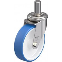 带柱杆的不锈钢万向脚轮, 配制动系统 'stop-fix', 配软质热塑性聚氨酯胎面的单轮, 配重型尼龙轮芯