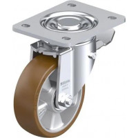 钢板压制万向脚轮, 重型负载设计, 带顶板配件, 配 Blickle Besthane® 聚氨酯胎面的重型单轮, 配铝制轮芯