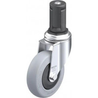 带螺栓孔配件的轻型万向脚轮, 配 'Blickle SoftMotion' 软橡胶轮胎的单轮, 配尼龙轮芯, 无痕, 灰色, 配塑料防线盖, 大