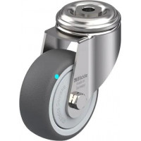 带螺栓孔的不锈钢轻型万向脚轮, 配制动系统 'stop-fix', 配热塑性聚氨酯胎面的单轮, 配尼龙轮芯, 配塑料防线盖, 大, 带额外的滚珠轴承密封