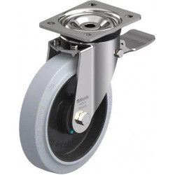 带顶板配件的不锈钢重型万向脚轮, 配制动系统 'stop-top', 配 'Blickle EasyRoll' 弹性实心橡胶轮胎的重型单轮, 配尼龙轮芯, 无痕, 灰色, 配塑料防线盖, 小, 带额外的滚珠轴承密封
