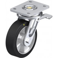 重型焊接钢万向脚轮, 配 'Blickle EasyRoll' 弹性实心橡胶轮胎的重型单轮, 配铝制轮芯, 导电