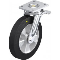 重型焊接钢万向脚轮, 配制动系统 'stop-top', 配 'Blickle EasyRoll' 弹性实心橡胶轮胎的重型单轮, 配铝制轮芯