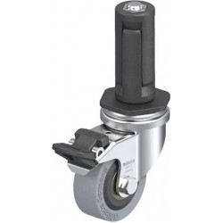 带螺栓孔配件的轻型万向脚轮, 配金属扩展器, 配制动系统 'stop-fix', 配实心橡胶轮胎的单轮,采用塑料轮辋