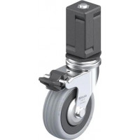 带螺栓孔配件的轻型万向脚轮, 配塑料扩展器, 配实心橡胶轮胎的单轮,采用塑料轮辋, 配钢制防线盖