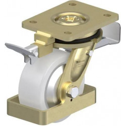 重型焊接钢万向脚轮, 重型万向头, 配制动系统 'stop-top', 配定向制动器, 和钢制脚挡, 尼龙重型单轮, 配钢制防线盖